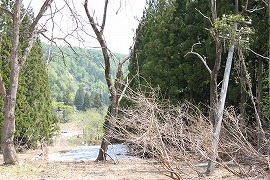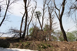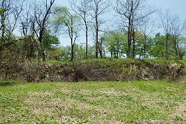 はえたたき辺りに段差があり、その先はなだらかな傾斜地となる。はっきりしないがこの辺りが旧トンネルの出口か。 (2005.5/2015.5)