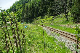カーブ付近から新線と分岐している旧路盤が残っている。 (2005.5/2015.5)