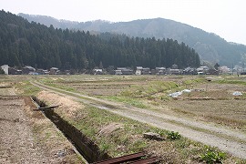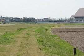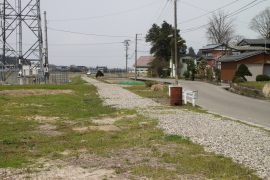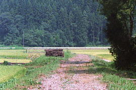 橋跡の駒岡方向。砂利道が続く。