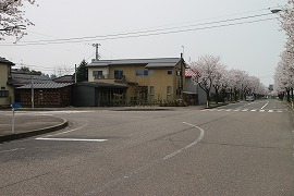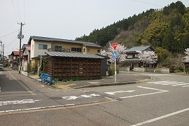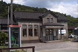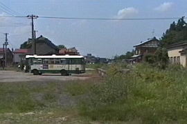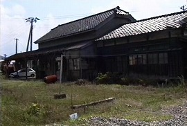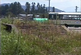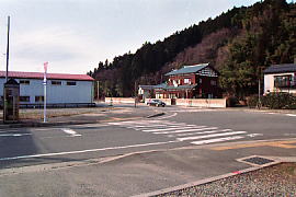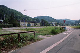 上記写真の反対側から駅跡を見る。電話ボックスがなくなり、柵もなくなり、今は民家が建っている。 (1999.3/2008.4/2013.4)