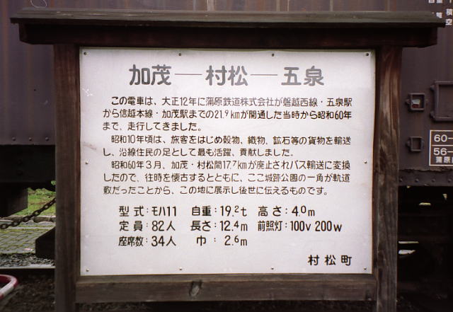 村松町郷土資料館併設の村松城跡公園に保存されている。(看板はクリックで拡大) (1997.12)