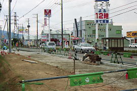 待合室が作られており、線路跡にバスの停車スペースができつつある。