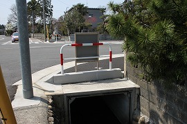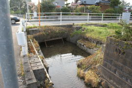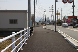 今泉駅の北側踏切の脇にあった橋の跡。現在歩道となり痕跡はなくなった。