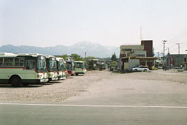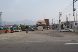 バスの発着場となった村松駅構内。線路は全くなくなってしまい、いつの間にかウエルシアができていた。