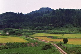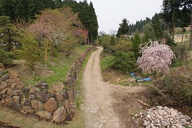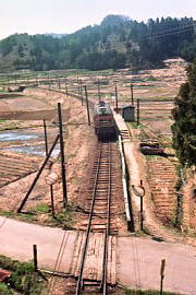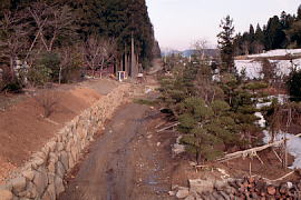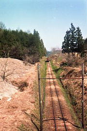 大蒲原へ延びる廃線跡を跨線橋から撮影。かなり土が盛られて小道となっている。