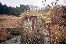橋台はコンクリートブロック上にH鋼を固定しただけの簡単な物。