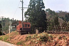 現役時代の列車の停車風景と廃止後のほぼ同アングル。当時の道路は狭く、上の写真のように駅の先で鉄道の下をくぐっていた。