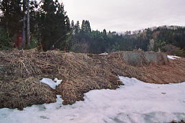 ホーム跡。待合室の土台が残っている。その脇の階段が草に隠れていて見えない。