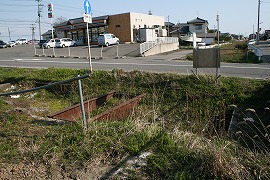 旧越後大野近くのコンビニ脇に小さな鉄橋跡が残っていたが、いつの間にかコンクリートの下に。 (2008.4/2015.1)