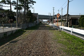 焼鮒駅手前で新幹線の高架下をくぐる。この辺りはバラストが残る。 (2008.4)
