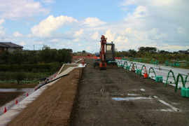 木場駅の新大野側は線路の撤去が早かった。ここも堤防工事が始まった。