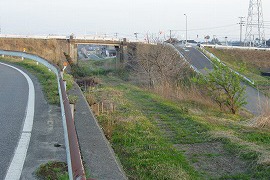 遊歩道は千日駅手前の跨線橋付近で終わっている。跨線橋手前が嵩上げされているが、何になるのだろう。 (2004.4/2004.4/2013.6)