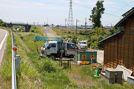 この付近は線路の撤去が早かった。駐車場に使っている。 (2001.4/2010.6)