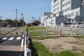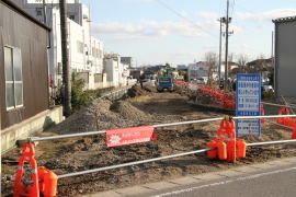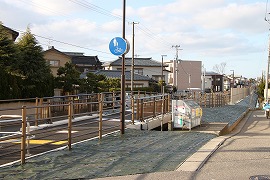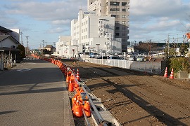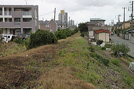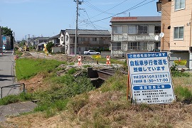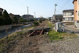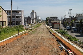 寺地から平島に向かう廃線跡。新潟脳外科病院脇を通る。2013年秋から自転車歩行者道工事が始まり、翌5月にほぼ完成。開通はまだ。