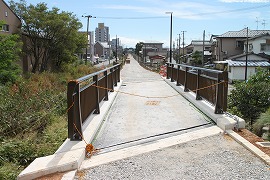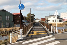 2011.1に東青山〜新大野間の自転車・歩行者道化の決定が報道され、その手始めがこの橋の改修だった。ガーダーが塗装されてコンクリートの路盤が敷かれていた。寺地〜平島の遊歩道工事が始まったると手すりがつけられた。