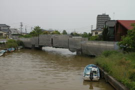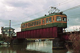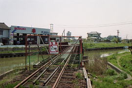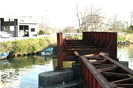 平島駅手前の西川に架かる橋梁。線路は撤去された頃。