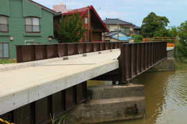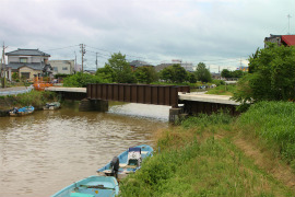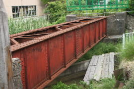 脳外科病院から平島方向にしばらく行くと短い鉄橋が残っていた。2013年秋に平島付近からここまで自転車歩行者道が完成した。この橋はガーダーを利用している。