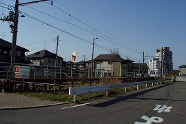 奥の重機は踏切撤去工事のもの。 (1999.8)