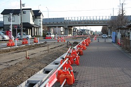 自転車歩行車道の工事が始まり、とりあえず完成したが開通はまだ。 (2014.1/2014.5)