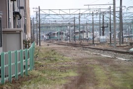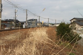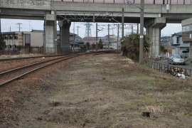 新津駅から羽越本線沿いに線路のない路盤が残る。昔の写真では2本並行して使われていたようなので、付け替えではなく単に廃止になったのであろう。 (2011.2)