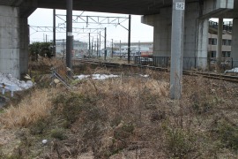 新津東バイパスをくぐり、しばらく盛土は続いている。 (2011.2)