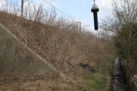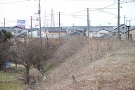 現在線脇の盛土は途中で途切れている。その先は駐車場になっているが、盛土を削って造ったものかどうかは不明。