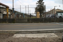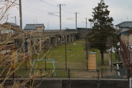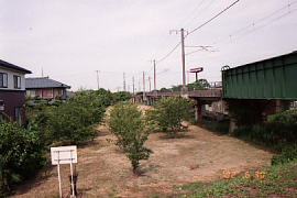 旧橋梁下の敷地は今も空地となって残っている。橋脚の痕跡は全くない。 (2011.2/2002.6)