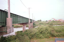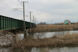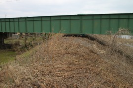 現在の橋桁は堤防のわずか上を通っている。 (2011.2)