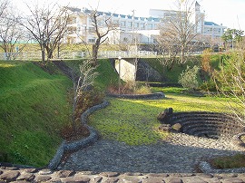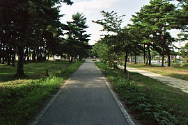 花巻グランド(現在は運動公園と言うらしい)に向かう廃線跡。奥は花巻東高校。 (2004.11)